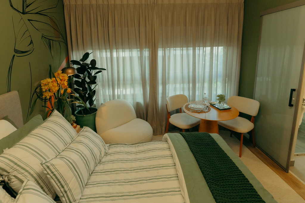 O Noon chega para atender esta pessoa que anda a pé, de uber e metrô, consome de forma consciente e sustentável, procura experiências culturais e gastronômicas e não abre mão do design e do conforto. Noon não é um hotel, também não é um flat. Mas está preparado para receber com conforto moradores e passageiros na região metropolitana de São Paulo. Preço e disponibilidade do imóvel sujeitos a alteração sem aviso prévio.