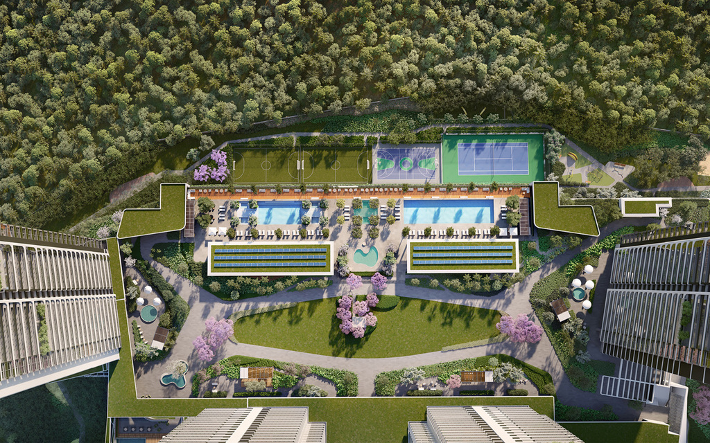 Área residencial em 44 mil m² de terreno, composta de 5 Torres de alto padrão, lazer completo, e parque privativo em 27 mil m² formado por Parque Central, Praça e Cinturão Verde. Preço e disponibilidade do imóvel sujeitos a alteração sem aviso prévio.