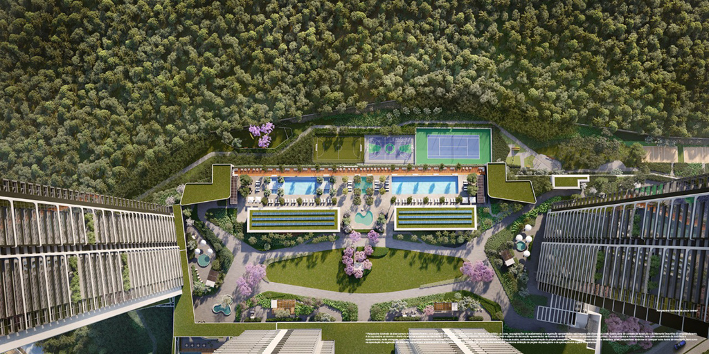 Área residencial em 44 mil m² de terreno, composta de 5 Torres de alto padrão, lazer completo, e parque privativo em 27 mil m² formado por Parque Central, Praça e Cinturão Verde. Preço e disponibilidade do imóvel sujeitos a alteração sem aviso prévio.